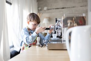 prepare a real espresso / LockDown with child 2020 / photographer: Nils Hendrik Mueller